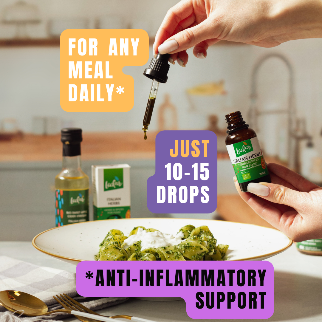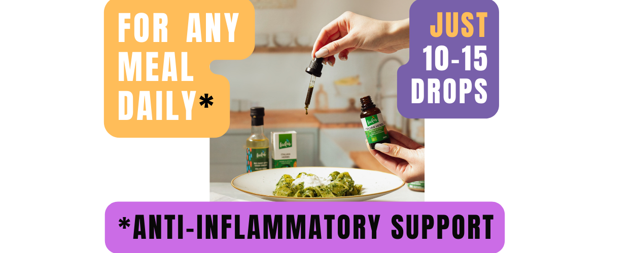 Colds and Inflammation risk becoming chronic from a deficiency in meal antioxidants. Five 0.17 oz liquid seasonings with Fermented Oregano & botanicals, packed with potent Activated Culinary Antioxidants for immune support.